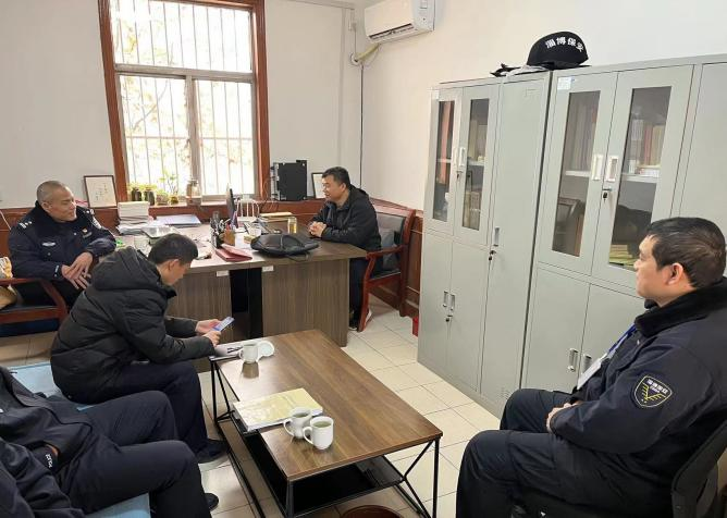 3月6日上午,淄博市公安局治安支隊(duì)二大隊(duì)警務(wù)技術(shù)一級(jí)主管秦義洲一行對(duì)博山大隊(duì)的安全工作進(jìn)行檢查,博山區(qū)公安分局治安大隊(duì)穆克震陪同檢查。